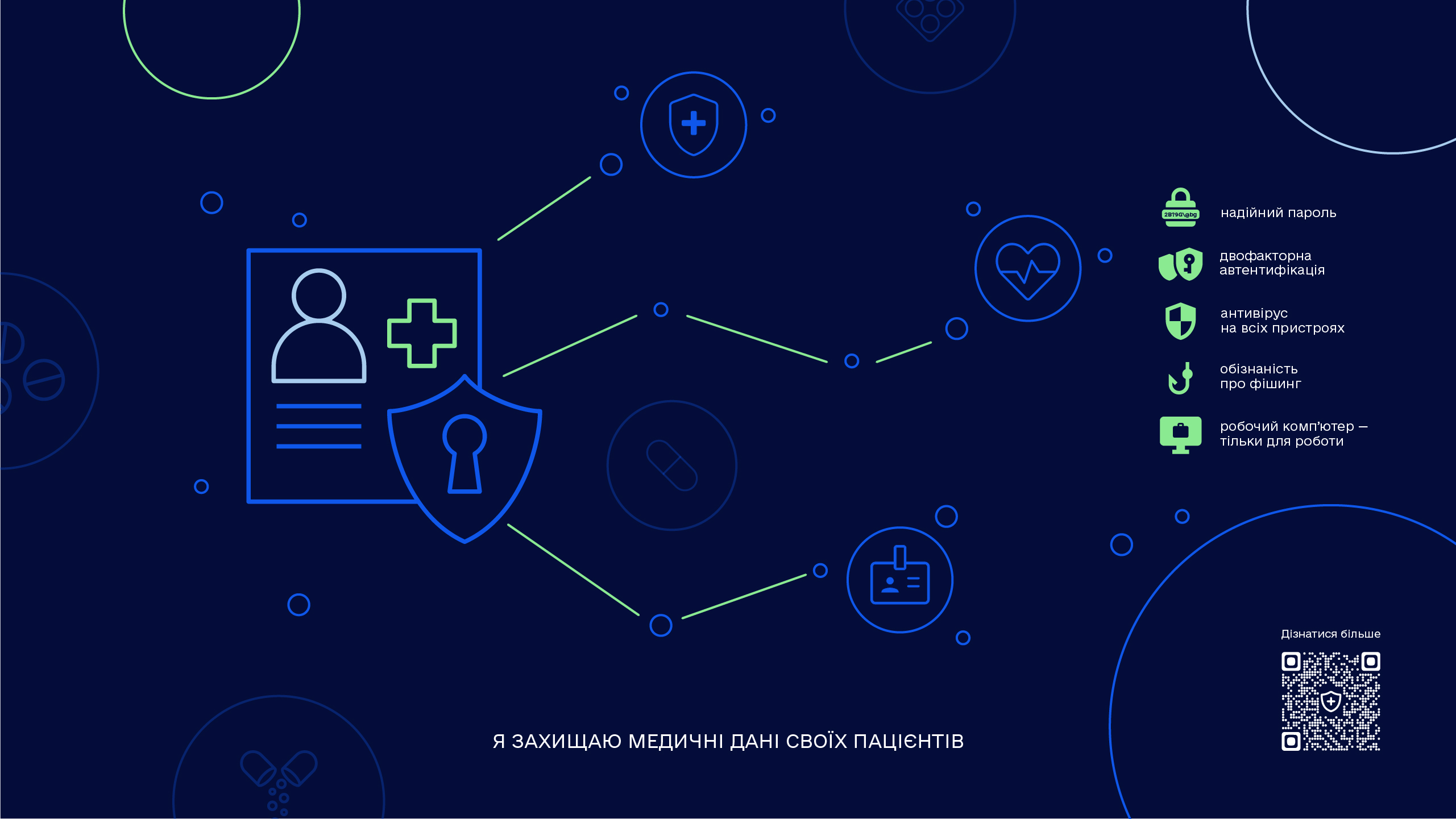 Кібербезпека у сфері охорони здоров’я стає одним із ключових питань для медичних закладів та держави. Розвиток електронної охорони здоров’я та активна цифровізація процесів вимагають від медичної спільноти не лише цифрових знань і навичок, а й знань щодо основ кібербезпеки і навичок захисту власних даних і даних пацієнта у цифровому просторі.